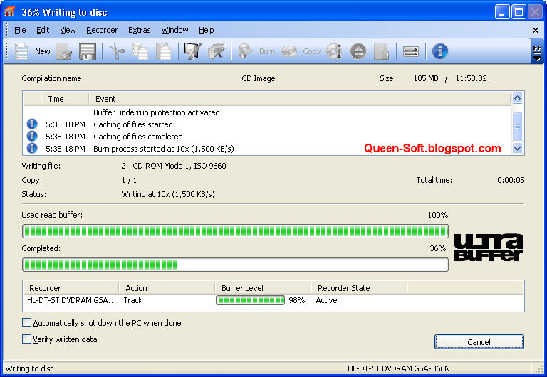 In functie de viteza aleasa si marimea imaginii ISO, operatiunea de scriere dureaza 1-20 minute.