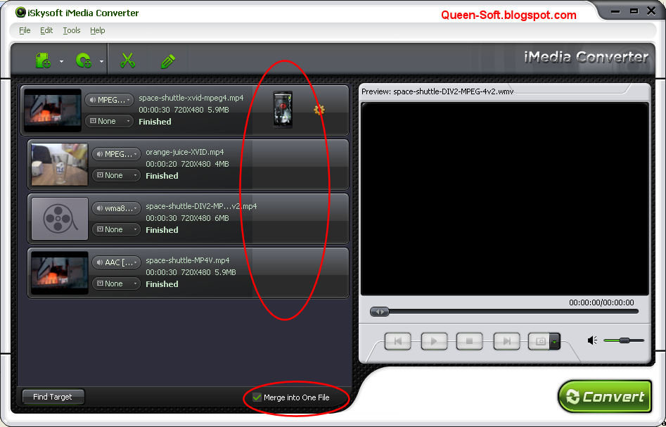 Dupa terminarea procesarii video, pentru a deschide fisierele convertite, apasati butonul Find target si este deschisa o fereastra cu folderul respectiv. Aceste folder este, de obicei, numit iSkysoft iMedia Converter\Output si se gaseste in My Documents.